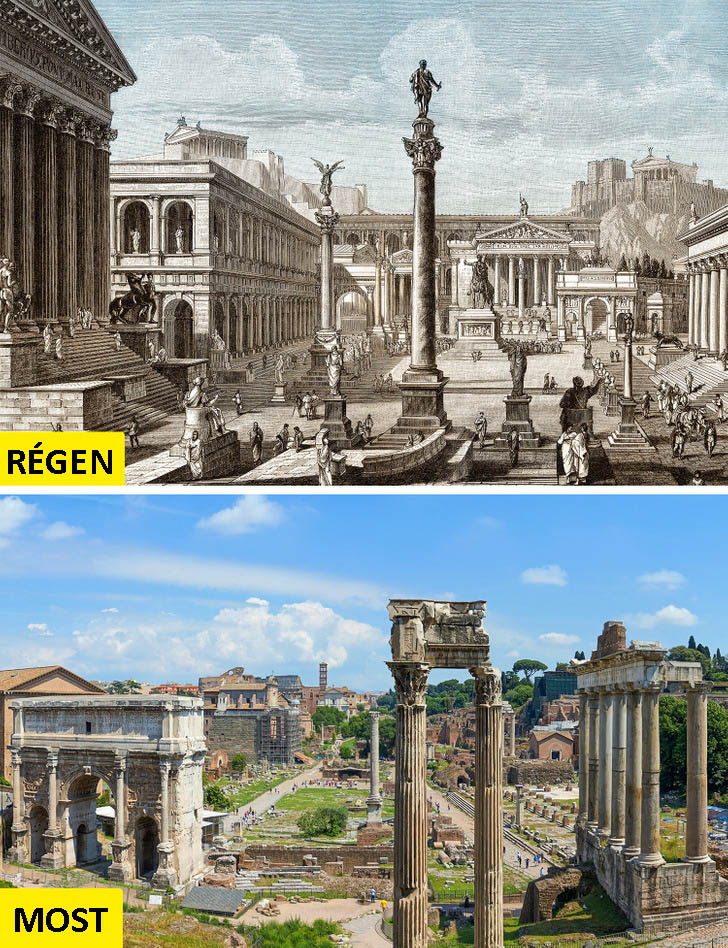 Sok évszázadon át ez a tér volt a római mindennapi élet központja. A Forum mellett számos híres és fontos épület is található.