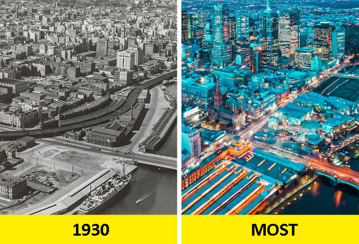 Egy 1930-as és egy mai fotó mutatja, milyen drasztikusan megváltozott az ausztrál Melbourne városa azóta.