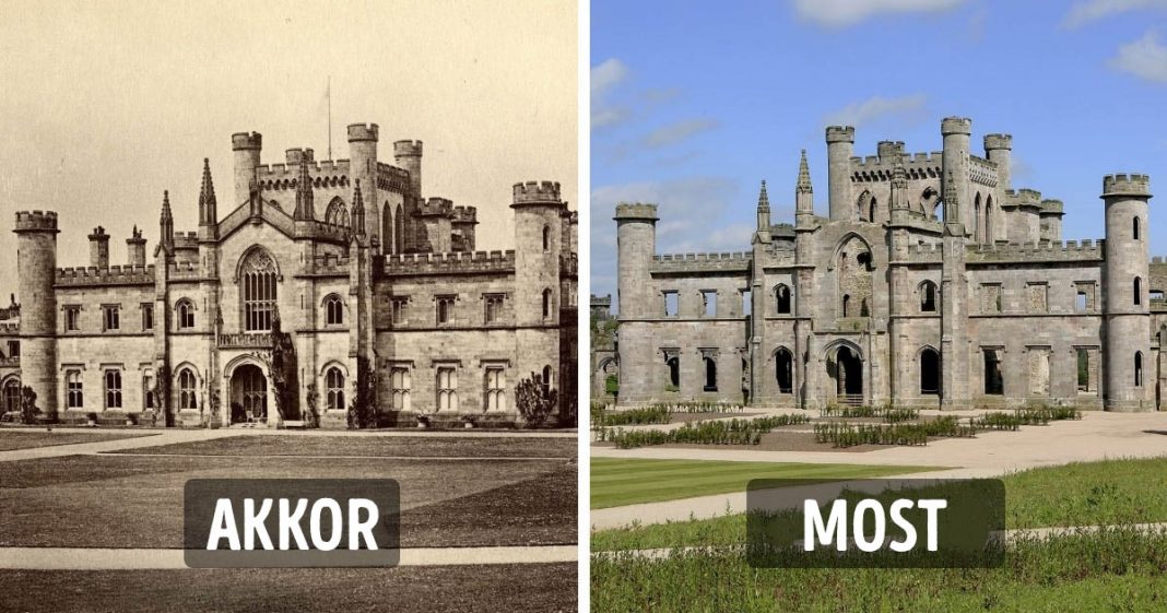 Tűz után elhagyatottá vált kastély.
