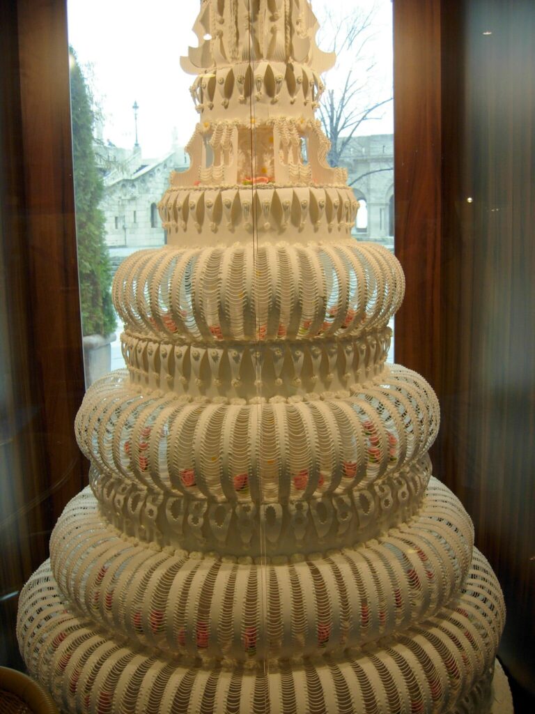 Ez a szépség végül a budapesti Marcipán Múzeumban került kiállításra, és 350 óra alatt készült el, 1400 tojásra és 22 gallon tejszínre.