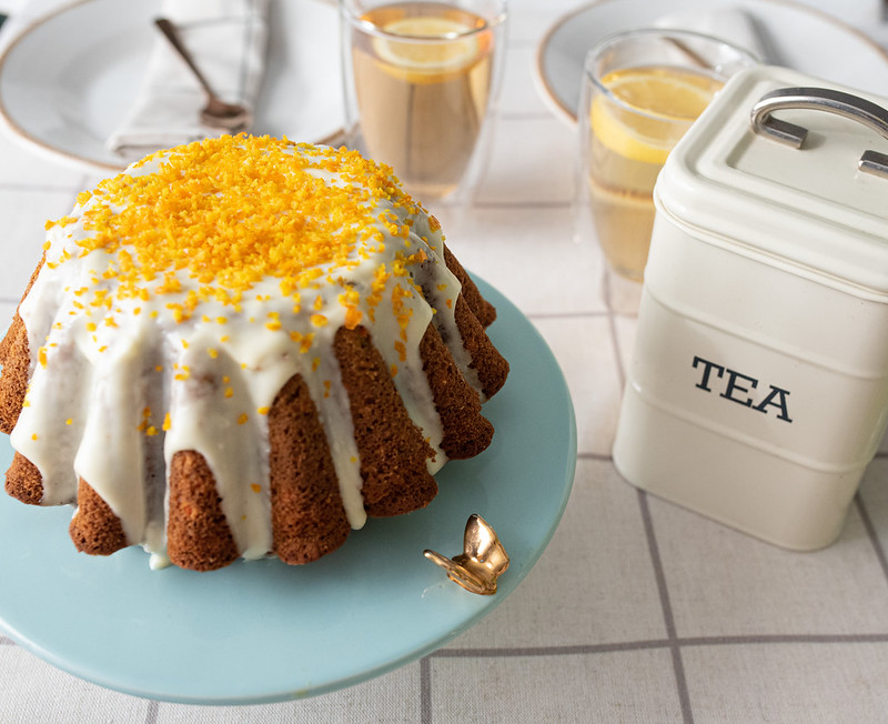 A narancshéját lereszeljük. Adjuk hozzá az olvasztott vajhoz. Keverjük össze a tojásokat, adjuk hozzá a cukrot, öntsük hozzá az olvasztott vajat és a narancshéjat, adjuk hozzá a lisztet, a szódabikarbónát, a fahéjat, a kardamomot és a sütőport. Jól összekeverjük. 180 fokon 60 percig sütjük.