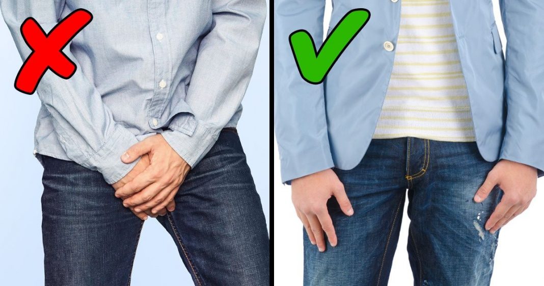 Ez határozottan egy férfi beállás, amikor a kezüket a nemi szervek területén kulcsolják össze. Ennek a művészneve a „fügelevél” pozíció. Ha ezt csinálod, könnyen megsértheted a munkatársaidat, akik kellemetlenül fogják érezni magukat. Szóval figyelj, hol a kezed!