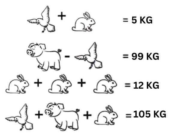 Ez a matematikai fejtörő arra kéri a résztvevőket, hogy számolják ki az egyes állatok súlyát egy adott képen. Aznek tűnő feladat hamar bonyolult egyszerű válhat, ha nem figyelsz oda a részletekre.