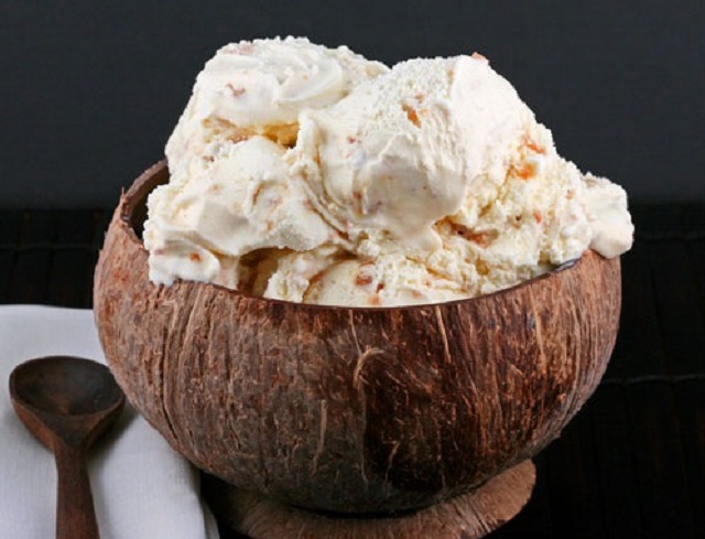A kókusztej konzervet egy éjszakára tegyük a hűtőbe. Az összes hozzávalót tegyük egy tálba és mixerrel keverjük jól össze. Tegyük egy zárható dobozba és rakjuk be a fagyasztóba, legalább 4 órára. Óránként vegyük ki és kavarjuk át, amikor az egész megdermedt és krémessé vált, tálalhatjuk.