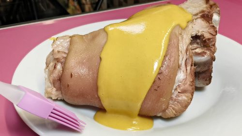 Sütés : Amikor a csülkök megfőttek, kiveszem őket a levesből, és egy tányérra helyezve hagyom kissé kihűlni. alaposan bekenem őket a mézes-mustáros szósszal, ügyelve arra, hogy minden oldalt egyenletesen bevonja. A csülköket sütőzacskóba teszem, majd a sütőbe helyezem, amelyet előzőleg 175 °C-ra melegítettem fel.