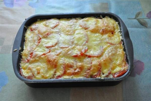 5 Vajazzunk ki egy sütőformát, majd kezdjük el rétegezni az elkészült darált húst, a lereszelt cukkinit, a tejszínes tojást, és a karikákra vágott paradicsomot. A végén szórjuk meg reszelt sajttal.