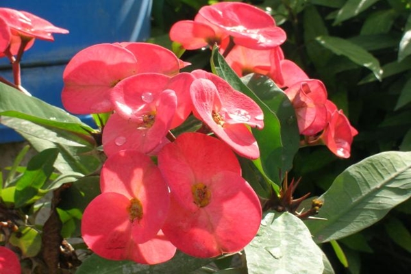 Különös látványt nyújt ez a vizet raktározó szukkulens, ez a vastag, szögletes, szürkésbarna szárán termetes töviseket viselő, ágas-bogas növény, amely lankadatlanul virágzik. Madagaszkáron őshonos, de sok klónja terjedt el a trópusokon, és a szubtrópusi régiókban. Apró, gyakran skarlátvörös virágernyői igazi különlegességek. Kevés, fényesen zöld, ovális levele a szárvégeken csokorban fejlődik.