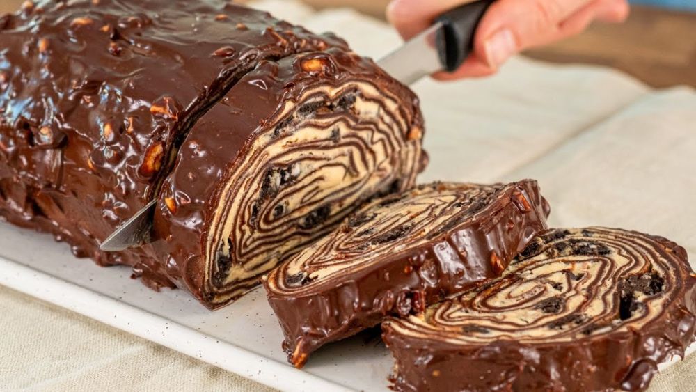 Helyezd a palacsintákat egy fóliára egymás után, majd kend meg mindegyiket a krémmel. Szórj rá aprított Oreo kekszet. Hajtsd be a palacsinták széleit, és tekerd fel a tortát. Fóliába csomagolva hűtsd be minimum 2 órára.