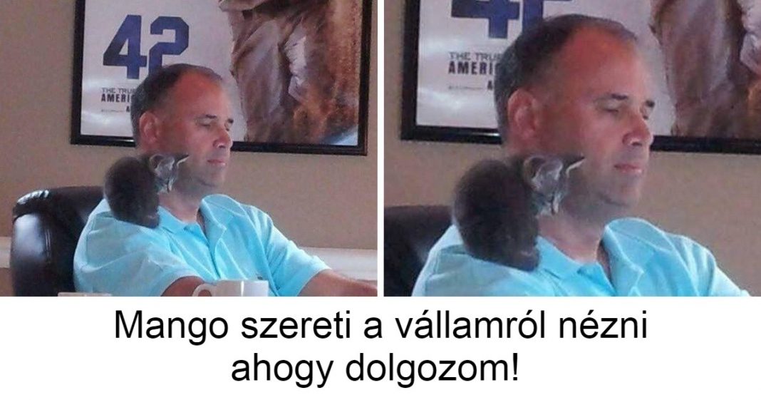Mango szereti a vállamról nézni ahogy dolgozom!